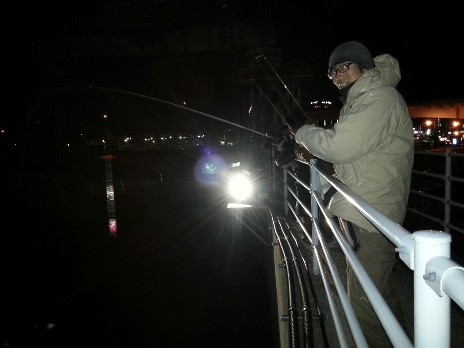 しまいにはキャップライトで海面を照らしてイカを探し始める輩まで(^^;)