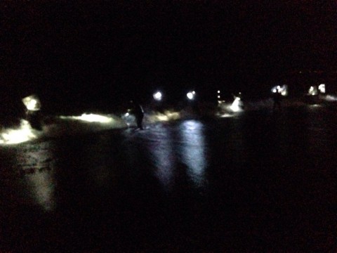 おはようございます。 バイパス降りるときに、このおっちゃん達のライトが沢山ならんでるのが見えたよ。 シラスウナギ獲ってたのか~!ってことは、そっちのサーフのほうがよかったのかな(笑