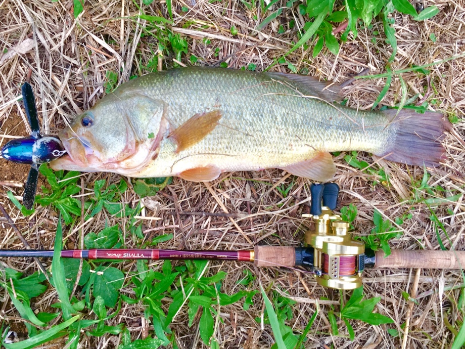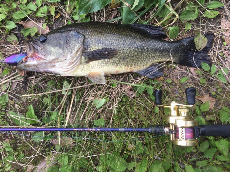 サクサクッとその日の状況を把握し、ポイントを間違えなければ、クソ暑いどピーカンなタイミングでもこんな感じで50upのバスが食ってくる(笑)