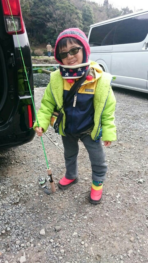 オチビは待ちに待った家族での管釣りにテンション高め…