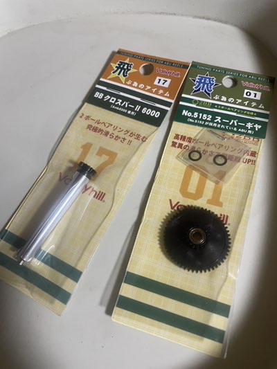 これにダブルハンドルを付けて、社外のレベルワインダーに交換して、ベアリングを追加して、、、