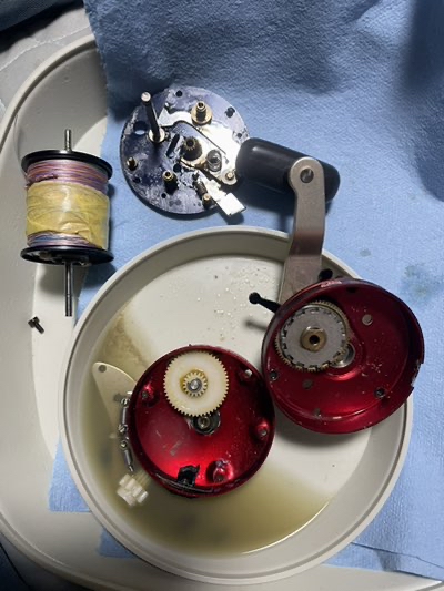 パーツクリーナーとブラシで徹底的に脱脂と清掃、ダイワのリールオイルを塗布しながら組み上げると、不具合はほぼ解消された。