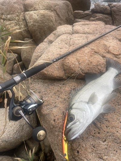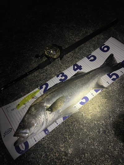 45cm、おチビちゃんではあるが3年ぶりのヒラスズキ…!