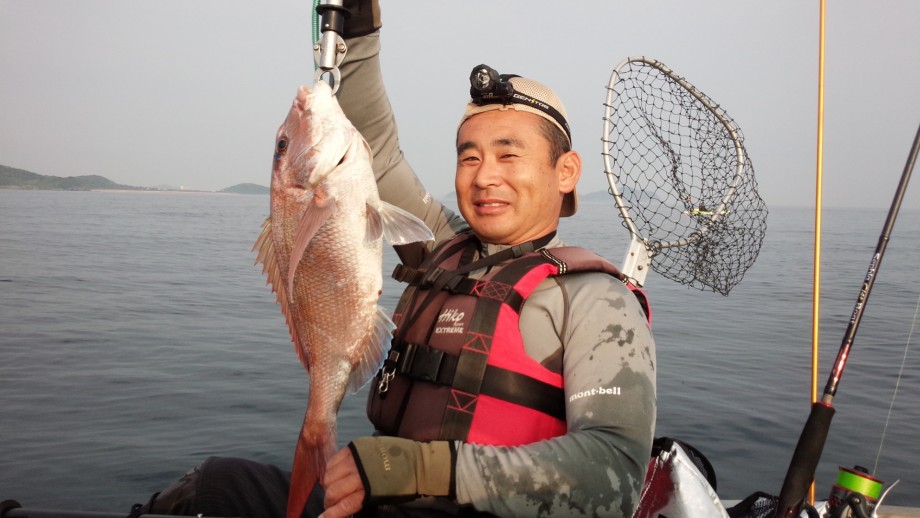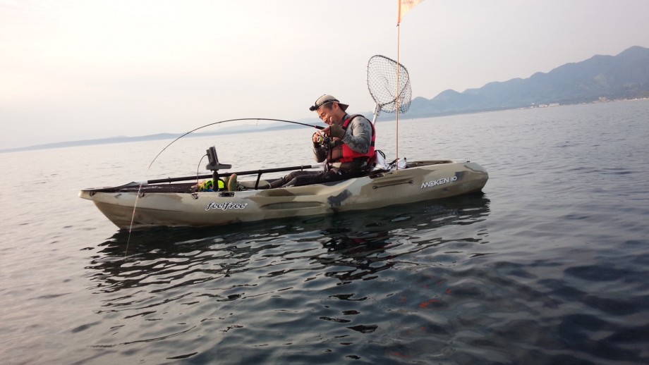 ドラグ出しながら、カヤック引き回されてます(笑)