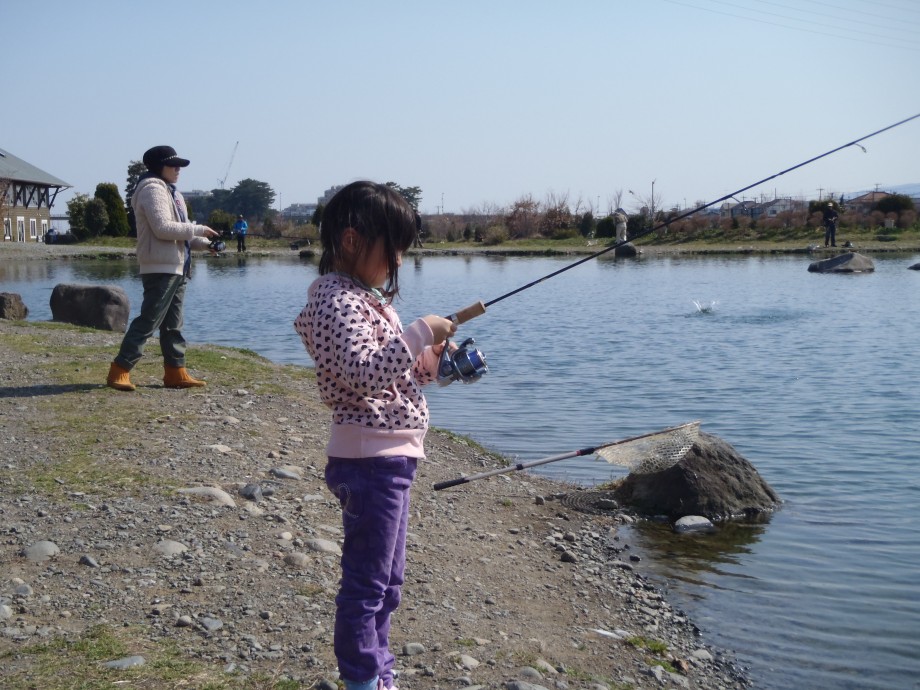家族で管釣りも行きました