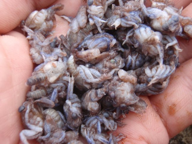 ところで驚いたことにこのヒラスズキ、お腹の中はカニ?のメガロパ幼生でいっぱい