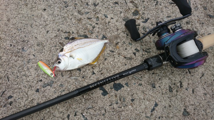 その間ちょっと釣りが出来そうなのでエラディケーターベイトフィネス EBTC-74MLS The Death XrossⅡにRevo ULTRACAST BF8でマイクロジグフラット10gで何か釣れないかなとボトム叩きをやっているとフォールで「カツン」とバイトがあり上がって来たのは何とヒイラギ!!
