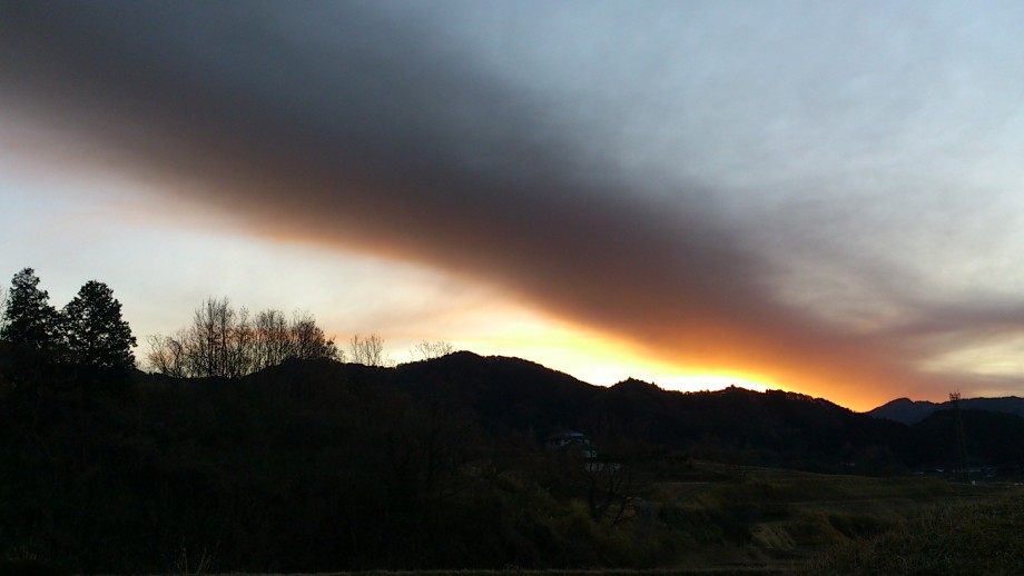 阿蘇山の火山灰が雲状に東向きに流れていました。