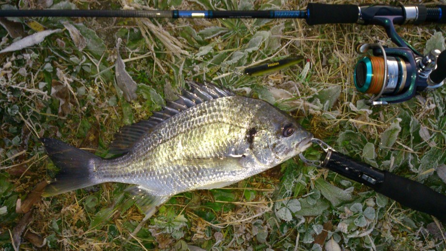 水温9度。ヒエー・・・ この水温どうなのよ、釣れんのか?