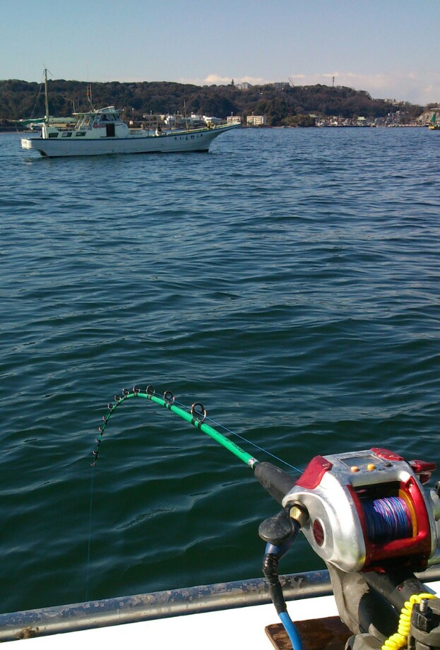 130号のビシがみるみる横に流れていきます。なんとか底をとり、コマセ振りながら指示ダナで待ちますが、待てど暮らせどアタリがない。