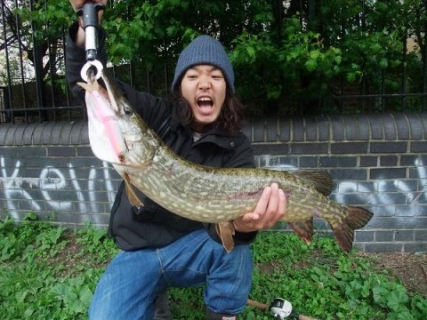 季節的なせいもあってかお腹もでっぷり目で、ファイトも超強力。普段の丸太の様なファイトは一体どこへ行ってしまったのか、何度寄せてもドラグを引き出すスリリングなやりとりでした。こんなこと書いたら誤解されそうなのですが、本当にパイクってあんまり引かないことが多いんです。2回ぐらいグリップではさむのをスカしてからようやくキャッチ。