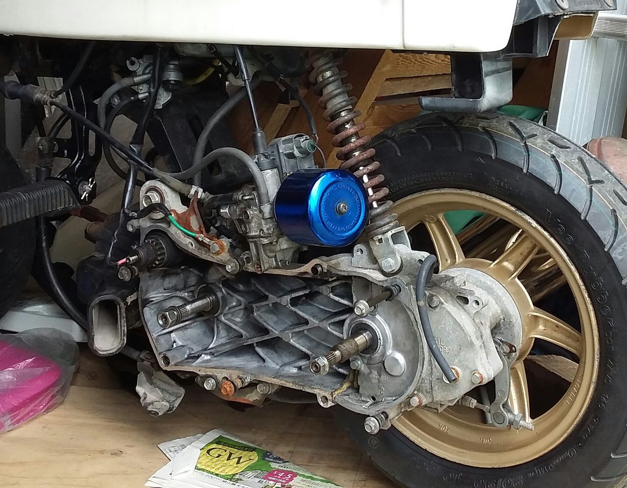 足回りの確認してエンジンかかるけどライブディオZXのエンジンが入っているのでパンチが凄くてウイリーしてしまいます。