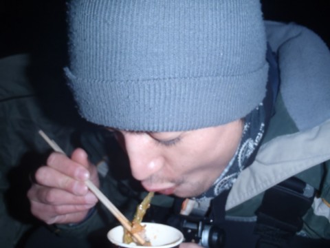 満潮前の時合までホルモン鍋で空腹を満たす事に!!