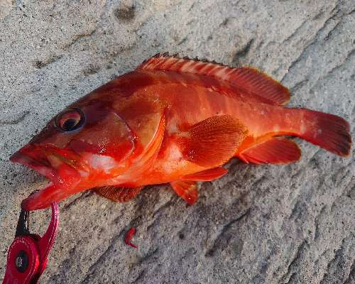 すると私にもアタリ!アワセると少し小さい感じだけどアカハタっぽい♪