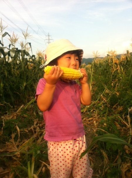 (採れたての生とうもろこしは甘くて美味しい!!)