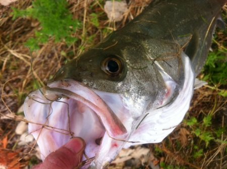瞬間にゴリゴリと根掛りのようなバイトがあり、シーバスヒット!