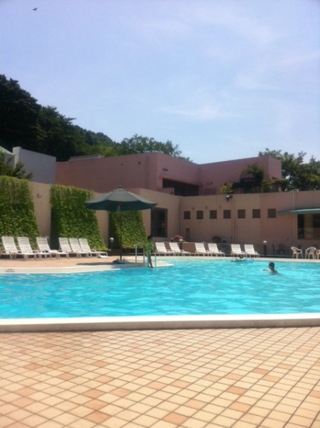 近所の金沢国際ホテルのプールで泳いだり