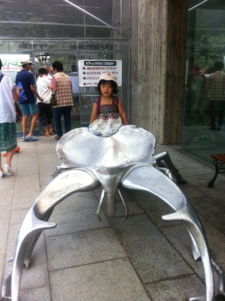 クワガタのオブジェに乗ったり。