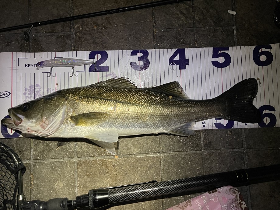 「いい感じの引きの強さだけどデッカいボラかもしれない」と思いながら無理に巻かず適度な距離を保ち、疲れて浮き上がるのを待つとエラ洗い!