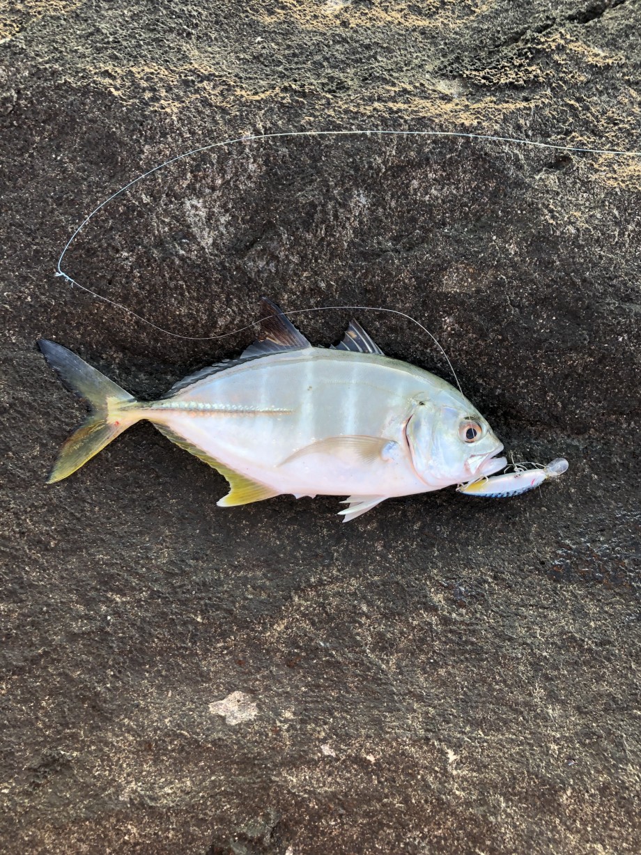 湘南某所へメッキ調査。現地到着時はまだ暗いのでまずはメタルジグでワカシ調査。居ました!8月初日いらいのご対面。当時25㎝だったのが30㎝に成長してました。まだワカシの範囲内ですがこの5㎝の差一段と引きが強くなって楽しませてくれました。