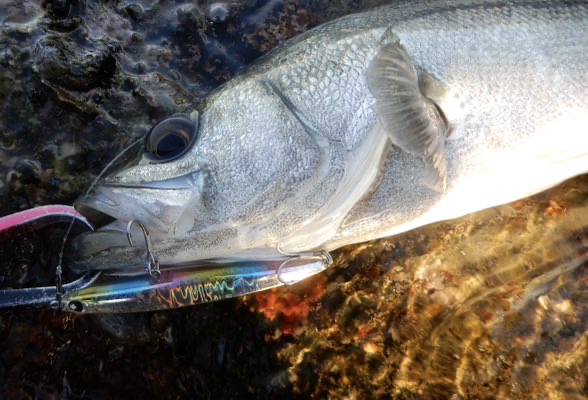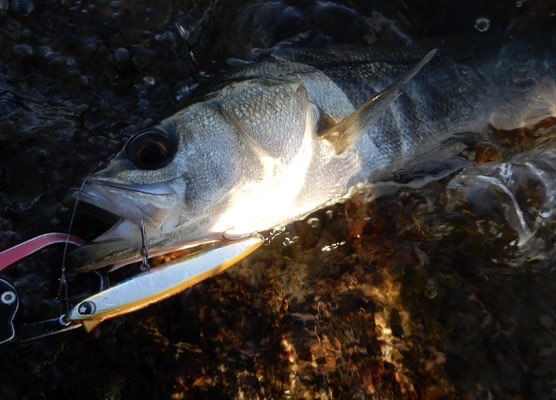 レギュラーサイズのシーバスが遊んでくれました。