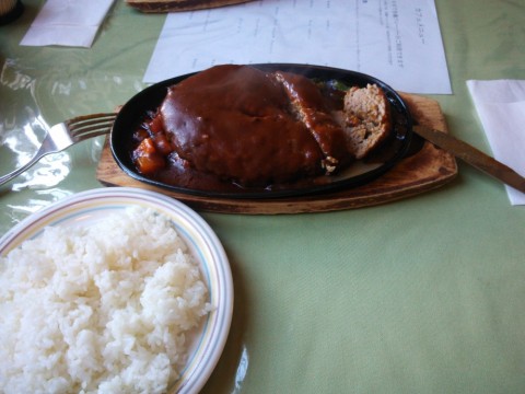 昼食に食べたハンバーグステーキ、めっちゃ美味しかった~~
