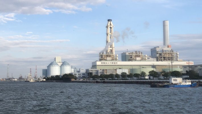予報通りに風が強く、煙突の煙が勢いよく流れている。