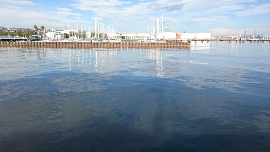13:30に到着すると、湾奥(ここの奥ね)に数羽のの鳥が水面を窺いながら旋回している。