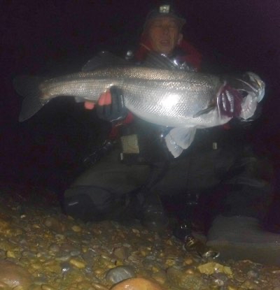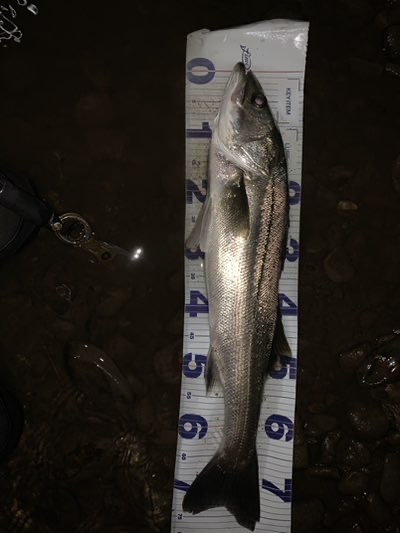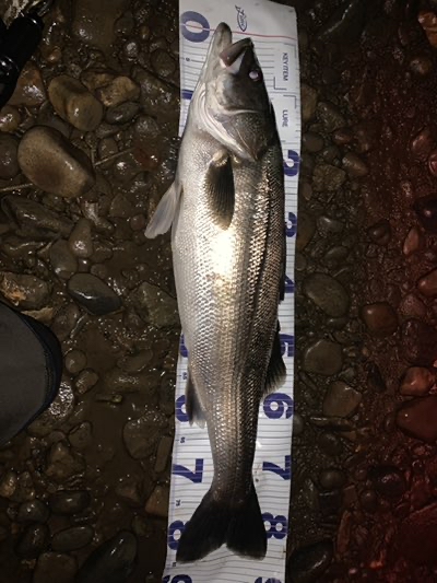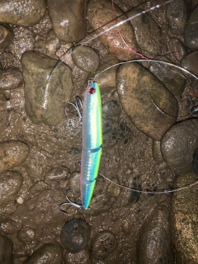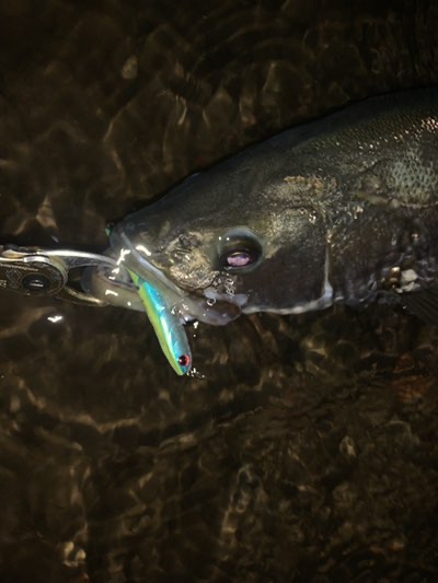 ウェーディングして、釣り始める頃(17:40頃)には暗くなってサイドプレス160を数投キャストすると・・・