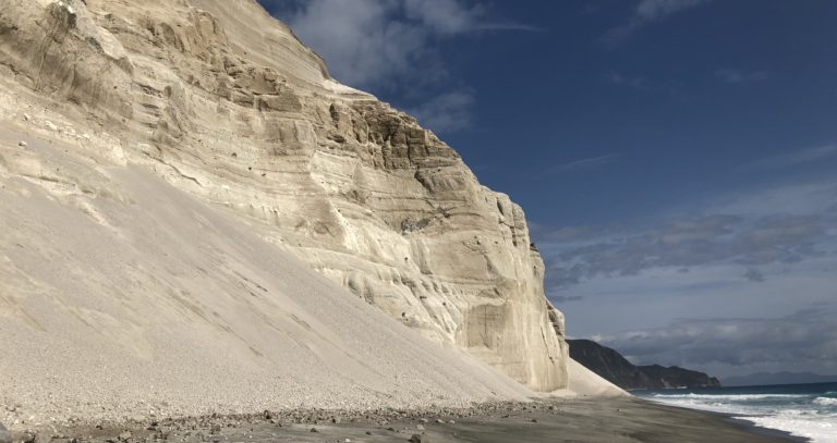 左に大波の恐怖、右は落石の恐怖・・・。単独、暗闇・・・。