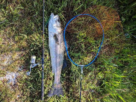6ヶ月ぶりのシーバスに少し緊張したが、今季一本目をあげ安堵しながらリリース。