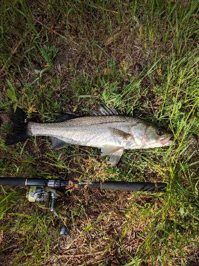 30分ほどしたら、田んぼからの水門が開いたおかげで少しだけ流れ始めた。すると少しして目の前でシーバスがジャンプ!「いるんじゃん!」と少し安心してボイル箇所にキャストすると2投目でヒット!かなり慎重にランディング