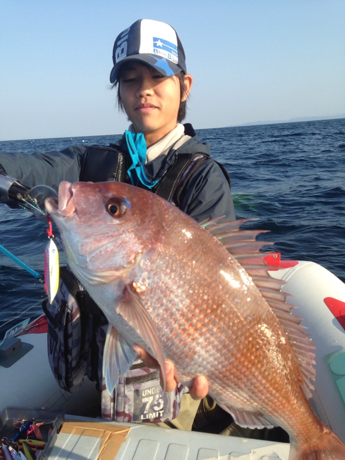 久しぶりにルビアスのドラグが唸る。真鯛の独特な引きは初心者の自分にもすぐ分かった。