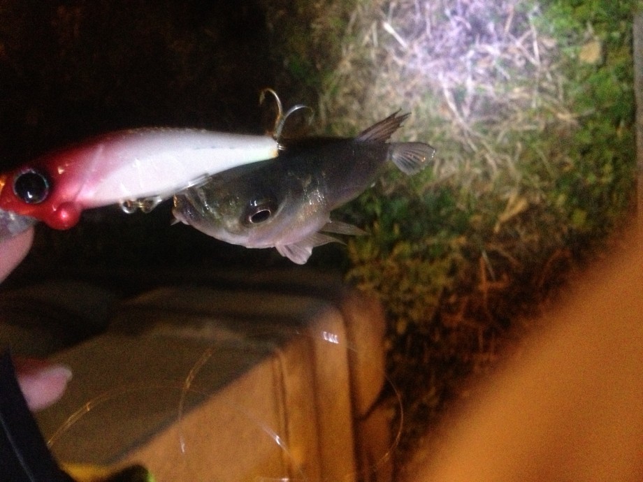 そのワンドのボトム付近探りたいと思いシャッド系のミノーで探る。近距離と足場の高さのせいでボトムまで届かないのでバイブレーションに変える。