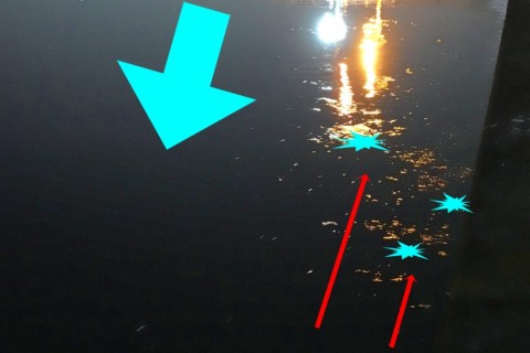 ただし東京の川の場合は下げ、上げともにしっかり流れが効いた状態になると港湾とは違い必ず濁りが発生する。