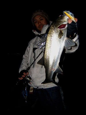 干潮時に隅田川へ寄り、遠めの魚をヨレヨレで確認し、手前でライズする魚をニョロで一発かける。