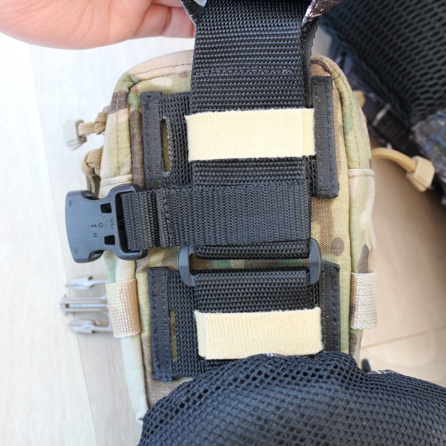 このポーチはライフベストのショルダーベルト部分に