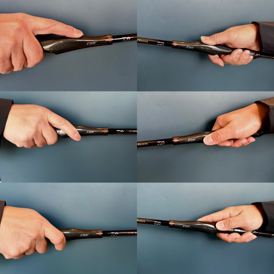 シーバスの場合、キャスト、ルアー操作、ファイトとリアグリップを含めてグリップの手や指の添え方は人それぞれです。