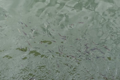 ↑こんな風にチチブやハゼ、ギマっ子らしき小魚が大量に水面へと浮上。