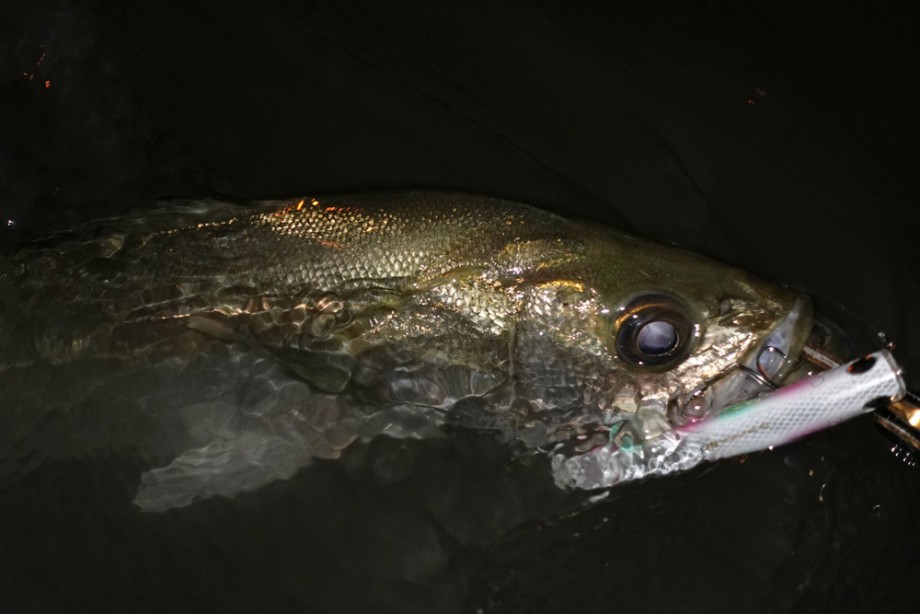 スライ110Fにかえて弱めの引き波で魚の居るあたりに