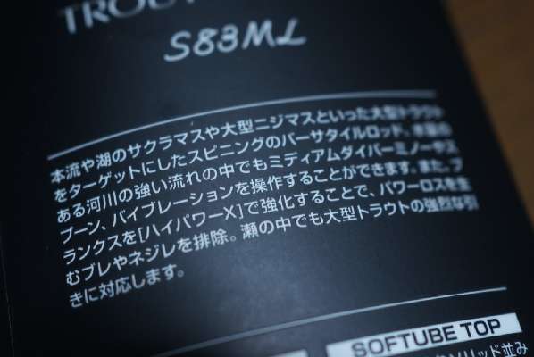剛性重視のストラディックも候補でしたが、ヴァンフォードの全体的に黒っぽいデザインが渋めなトラウトワンのテイストには合いそうな気がして、それが購入の決め手になりました。