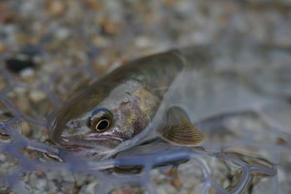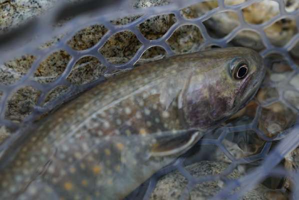 退渓前の最終ポイントで、ヤマトっぽいイワナをキャッチ成功。
