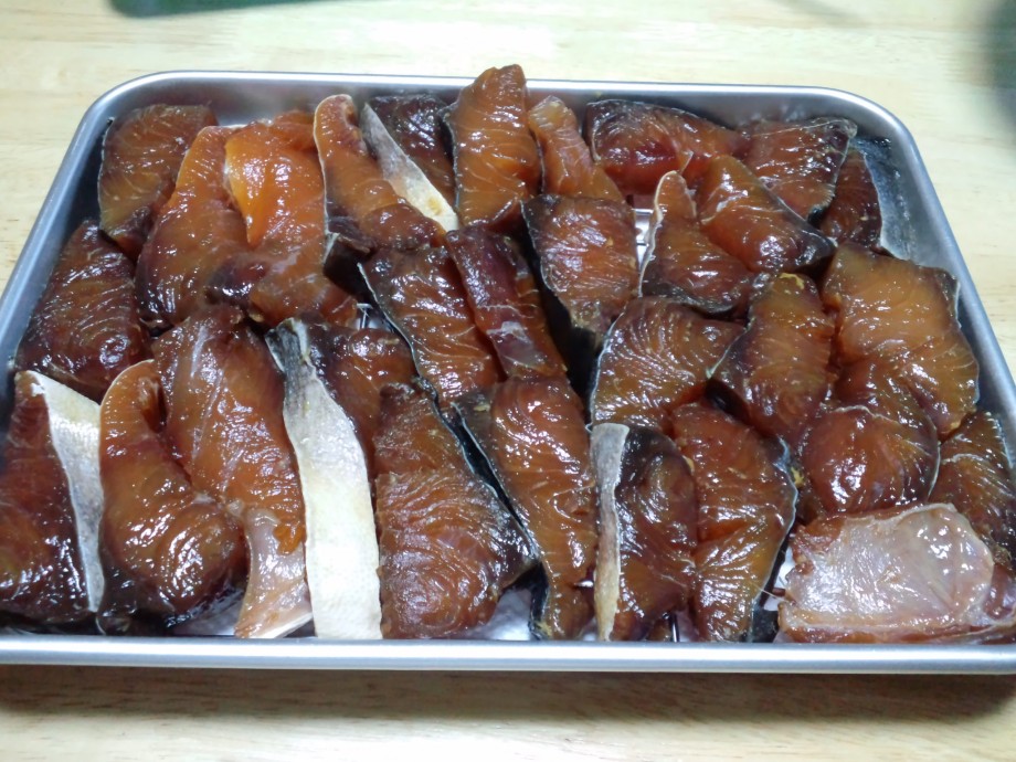 先日釣ったブリを下ごしらえして冷蔵庫で乾燥
