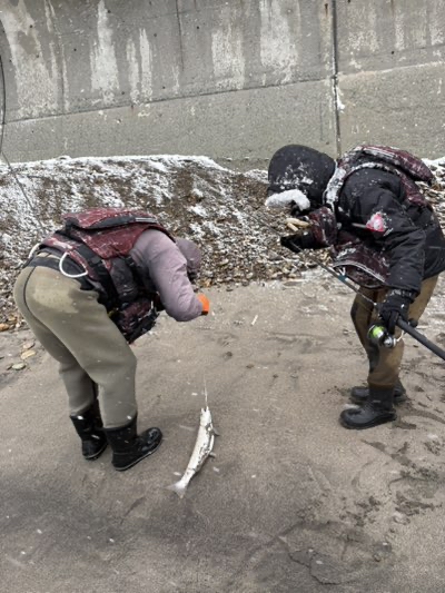 60オーバーの3キロくらいかな?砂まみれのまま撮影(クロネコ写真部直伝)