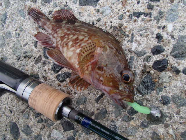 三重までの道中の初日は高松から岡山経由で瀬戸内エリアの一般道を通ってラン&ガンし、朝にヒットしたカサゴ。