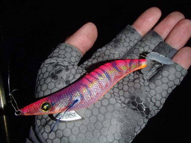 エギスタ ラトルシャロー3号に手首が持っていかれる反応が出たので瞬間的にアワセを入れたら、ゲソの身切れ