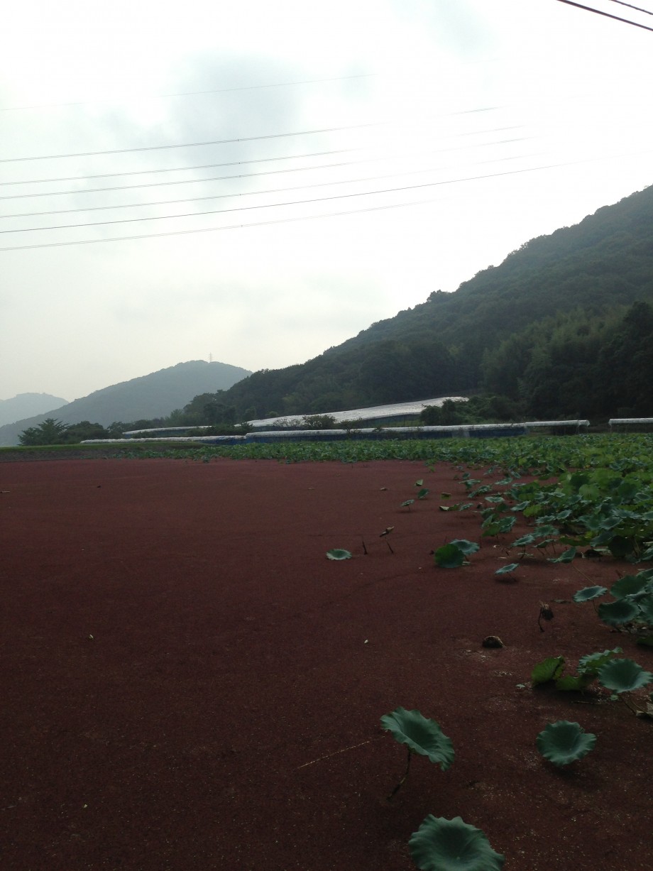この野池は一瞬赤潮??と思いましたが、これも水草です。