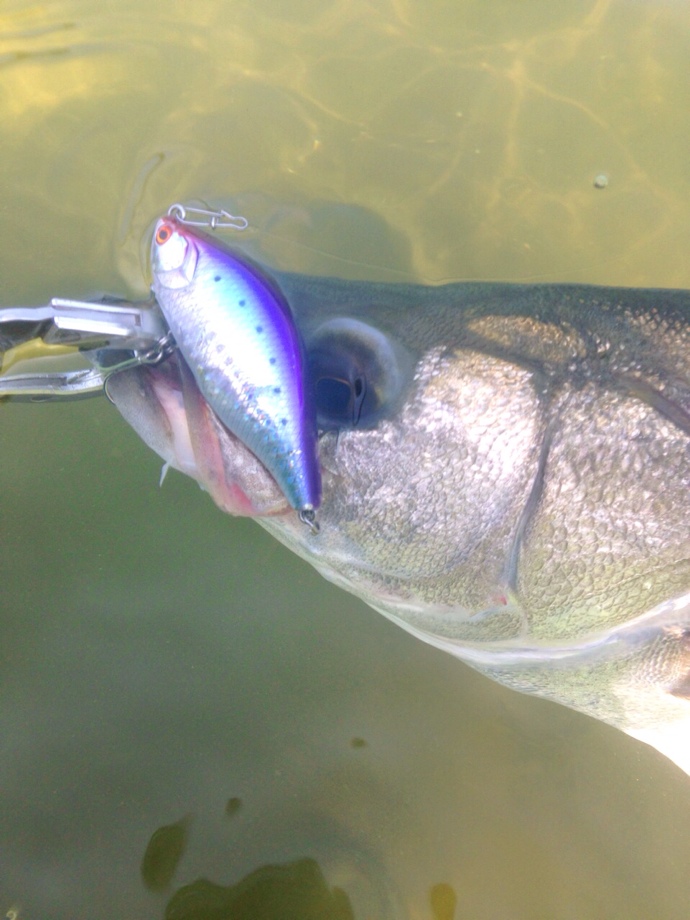 あと、テンションをかけない状態でのバイトが多いためシーバスの口の中にOGREがスッポリなんてことがよくありますので、バイト時の瞬間的なフッキングとフックのバーブを潰しておく方が魚のダメージも少なく手返しもいいと思います(^^)v