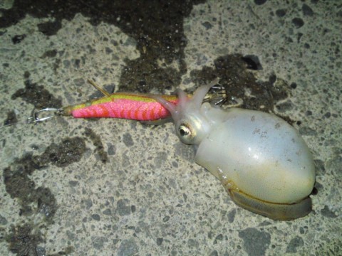 早速いつだか拾ったエギを投げてみることに。(ちゃっかり持ってきてた)