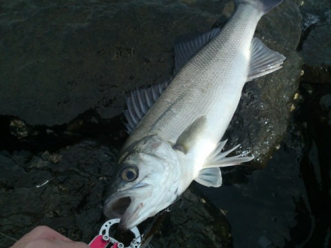 すると早々に隣の方がクロダイ、逆隣の人がシーバスを上げる。